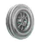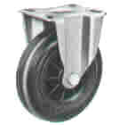 Roues en polyamide, bandage standard en caoutchouc noir dureté shore 85, corps en matière thermoplastique à haute résistance. (Existent en bandage en caoutchouc gris bleu élastique ne marquant pas les sols, dureté shore 80.)